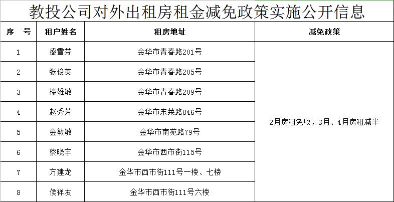 根據省、市及市社發集團相關通知要求,現將市教投公司出租房租金減免政策實施情況公開如下: